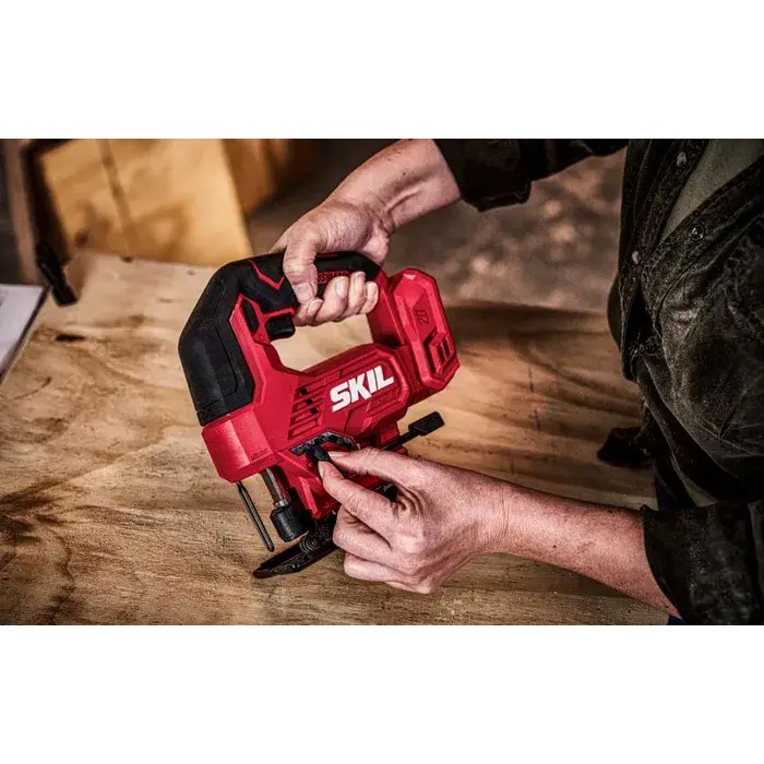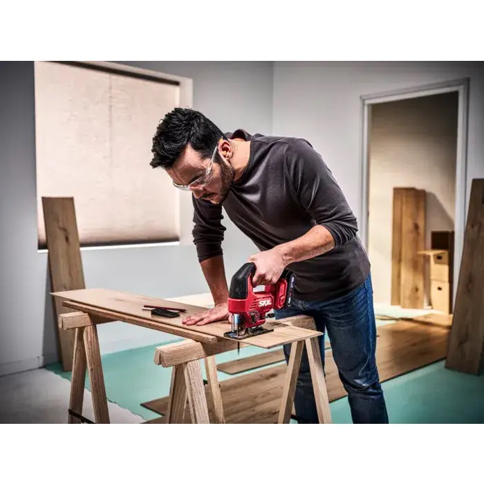 20V Brushless Rechargeable Jigsaw, Ideal for precise, straight, curved cuts and cuts up to 45°, Designed for cutting a wide variety of materials (using the appropriate blades) such as: wood, steel, metal, aluminum, plastic, and more. Comes with 2.0Ah Battery + SKIL Charger + Set of 21 "T" blades for a vertical saw - various types for cutting wood, steel and plastic.