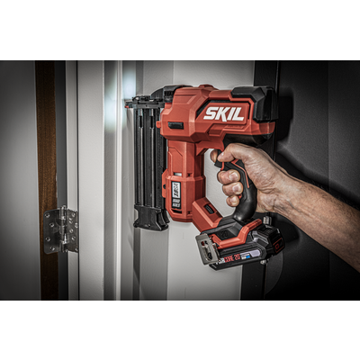 20V Brushless Rechargeable Nail Gun, Suitable for a wide range of projects, Nail firing capability at a rate of 120 nails per minute, Ability to fire 2500 nails on a single charge, 2-mode selector switch: single firing / continuous firing, capacity: 105 nails, Nail diameter: 18 (1.2 mm) in a variety of length sizes from 16 mm to 54 mm. Comes with 2.0Ah Battery + SKIL Charger
