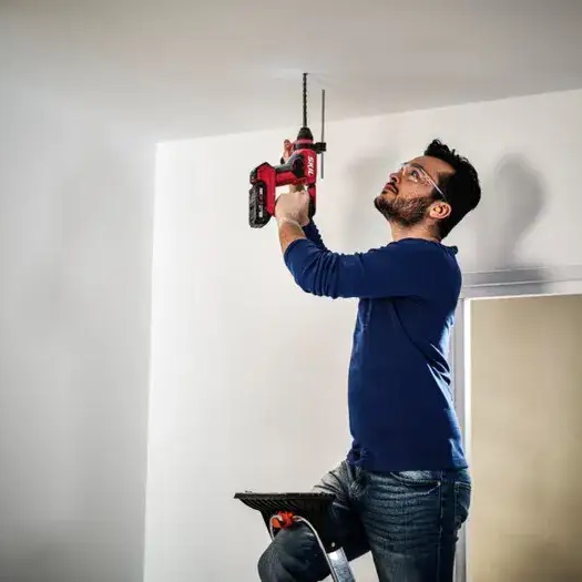 A powerful, lightweight and compact rechargeable hammer with a 20V Brushless brushless motor for use with SDS drills, ideal for drilling in concrete, stone and blocks, 1.5(Joule) impact force with shock-absorbing handle, The hammer has two working modes: one for screwing or drilling in wood, metal, etc, The second mode is for drilling in concrete, stone, and blocks, Comes with 2.0Ah Battery + SKIL Charger.
