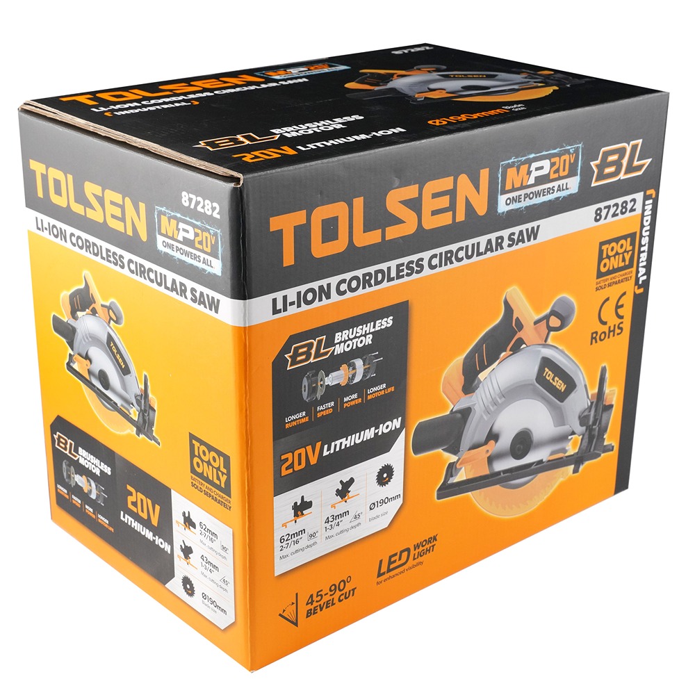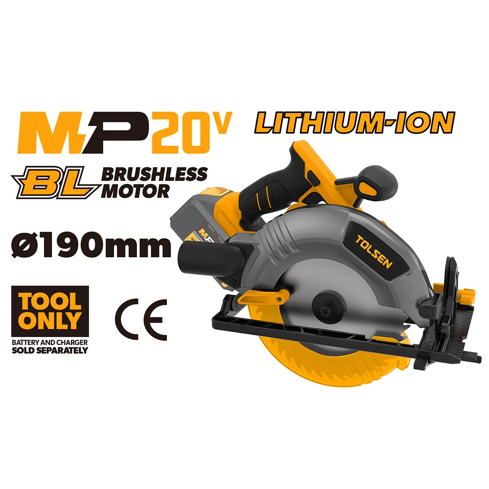 Tolsen, Li-ion cordless circular saw 190mm (Brushless motor). (TOOLONLY)