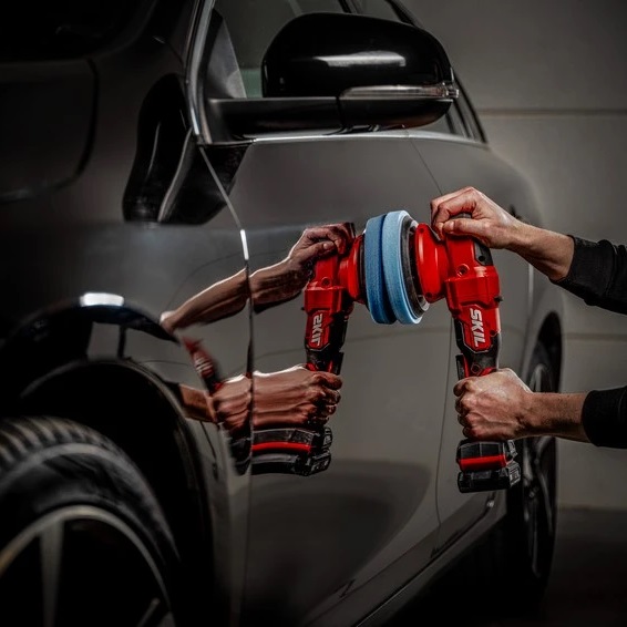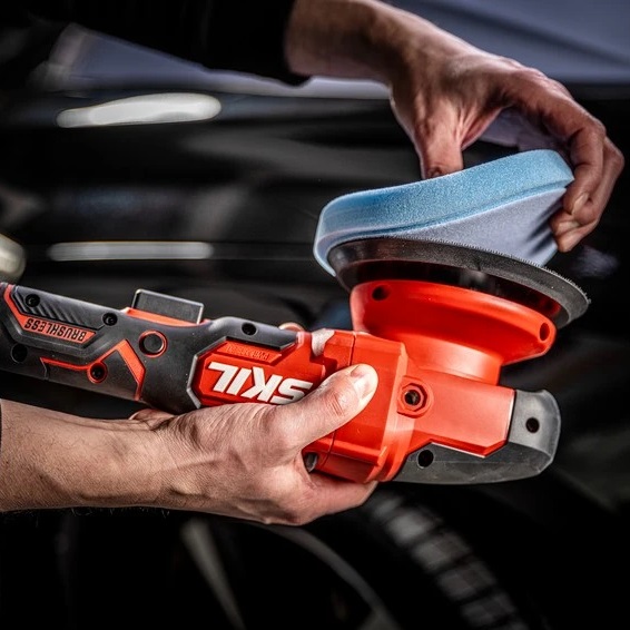 Polisher for polishing and buffing, "5 20V Brushless Electronic +3 Speeds, A dual-action polisher is ideal for a variety of tasks in the care and maintenance of vehicles and painted surfaces. It can be used for paint repair by removing minor scratches, oxidation marks and fine blemishes, as well as for polishing to restore the shine to the vehicle's paint. (TOOL ONLY)