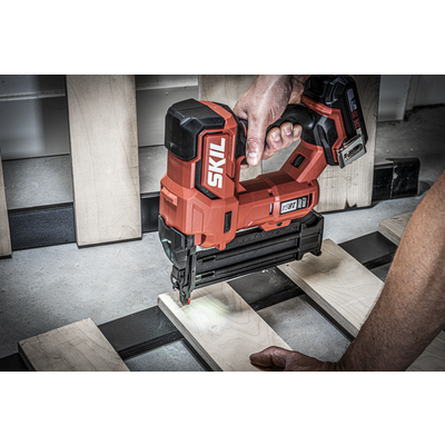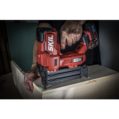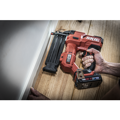 20V Brushless Rechargeable Nail Gun, Suitable for a wide range of projects, Nail firing capability at a rate of 120 nails per minute, Ability to fire 2500 nails on a single charge, 2-mode selector switch: single firing / continuous firing, capacity: 105 nails, Nail diameter: 18 (1.2 mm) in a variety of length sizes from 16 mm to 54 mm. Comes with 2.0Ah Battery + SKIL Charger