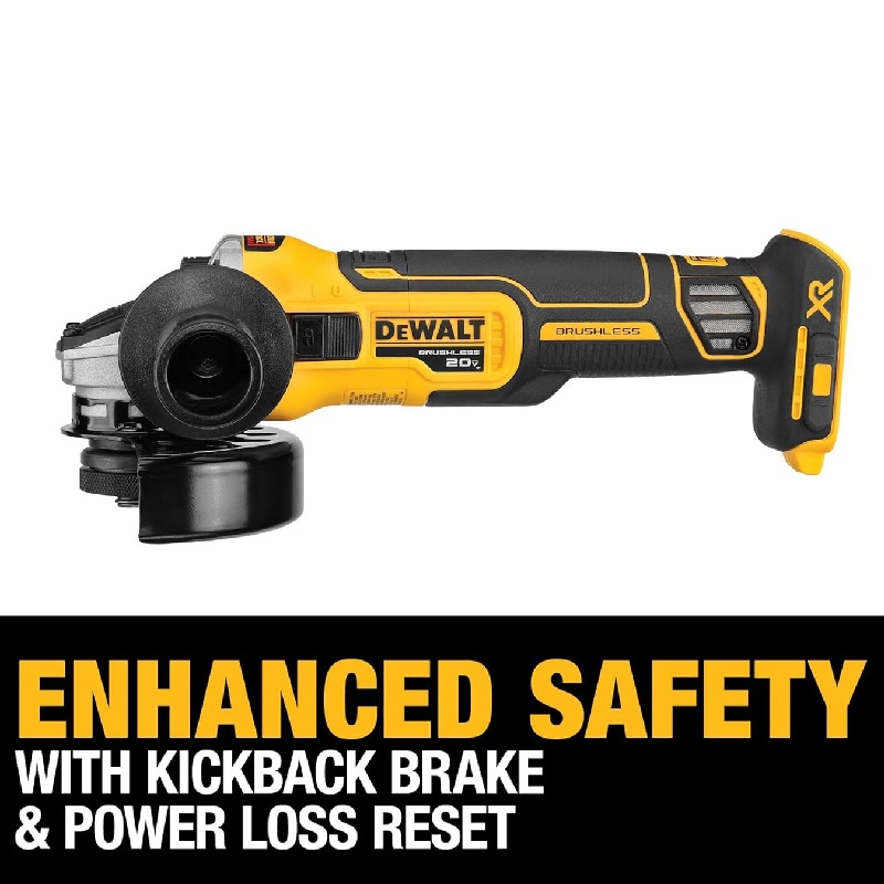 Get better performance, runtime and less service costs with 125mm brushless angle grinder. The electronic clutch reduces kick back in the event of a stall and the electronic brake ensures the disc stops quickly and safely. (TOOL ONLY)